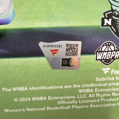 Up for sale is a custom framed 16x20 Photo autographed by Sabrina Ionescu of the New York Liberty. The autograph has been professionally authenticated by Fanatics Authentic, providing confidence in the authenticity of this basketball collectible. The Frame measures 22"x28" A great addition to any basketball or sports memorabilia collection. Listed With Mascot.