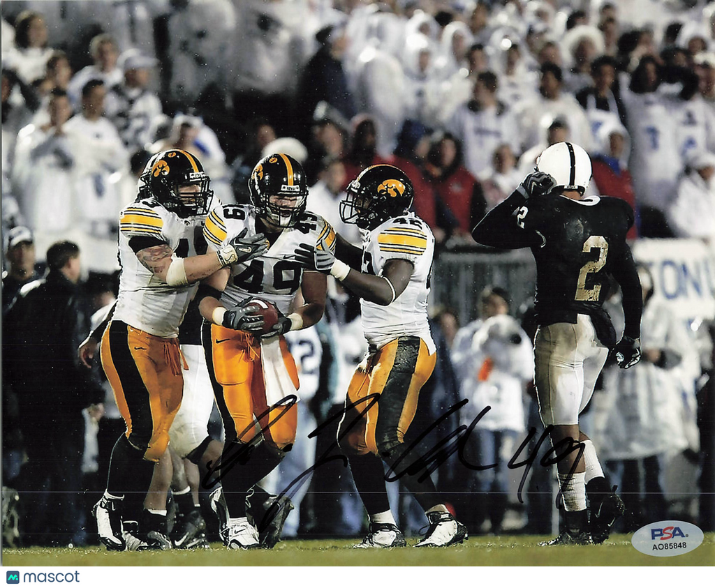Up for sale is a signed Iowa Hawkeyes football 8x10 Photo autographed by A.J. Edds. The autograph has been professionally authenticated by PSA, providing confidence in the authenticity of this football photograph. A great addition to any football or sports memorabilia collection. Listed With Mascot.