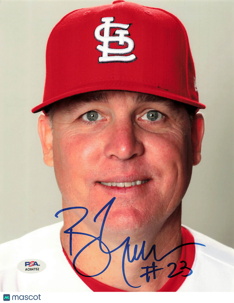 Up for sale is a 8x10 Photo hand signed by Bill Mueller of the St. Louis Cardinals. This autographed photo is professionally authenticated by PSA, ensuring authenticity for collectors and fans alike. A great addition to any sports memorabilia collection. Listed With Mascot.