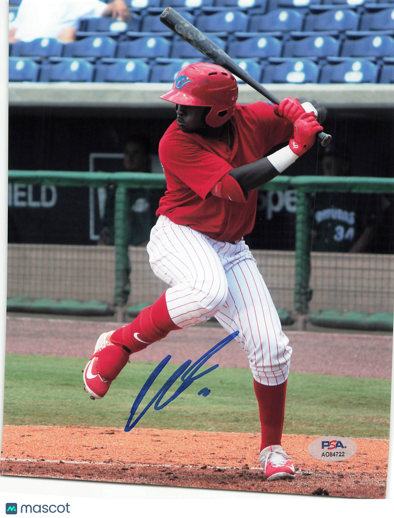Up for sale is a 8x10 Photo hand signed by Cornelius Randolph of the Clearwater Threshers. This autographed photo is professionally authenticated by PSA, ensuring authenticity for collectors and fans alike. A great addition to any sports memorabilia collection. Listed With Mascot.