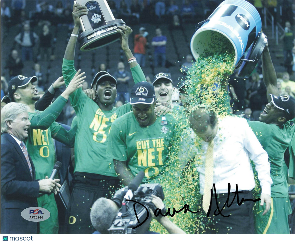Up for sale is a signed basketball 8x10 Photo autographed by Dana Altman of the Oregon Ducks. The autograph has been professionally authenticated by PSA, providing confidence in the authenticity of this basketball collectible. A great addition to any basketball or sports memorabilia collection. Listed With Mascot.