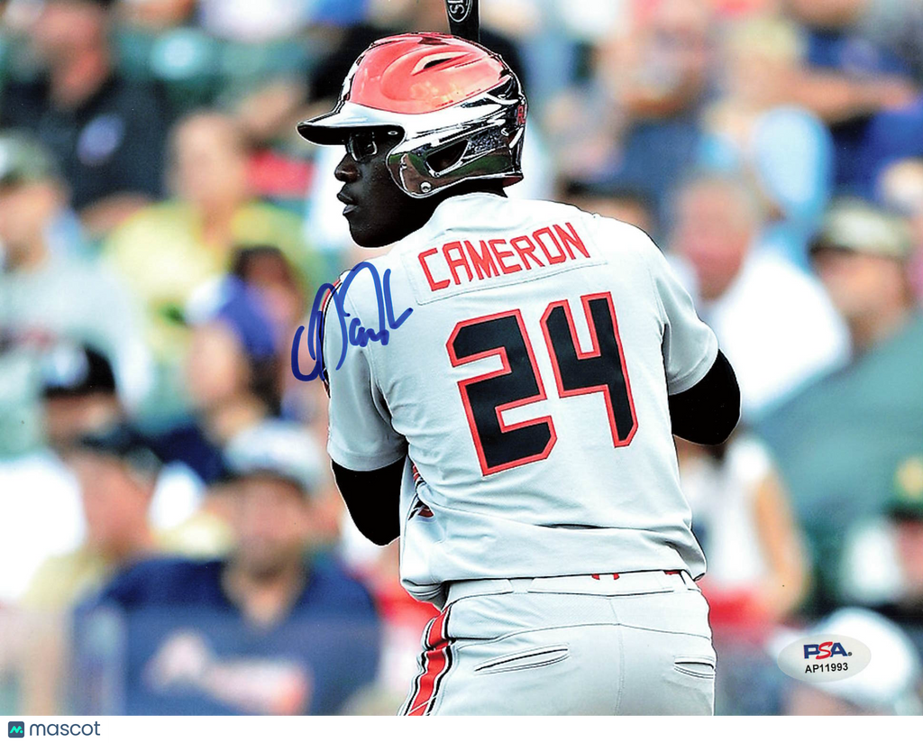 Up for sale is a 8x10 Photo hand signed by Daz Cameron of the Cincinnati Reds. This autographed photo is professionally authenticated by PSA, ensuring authenticity for collectors and fans alike. A great addition to any sports memorabilia collection. Listed With Mascot.