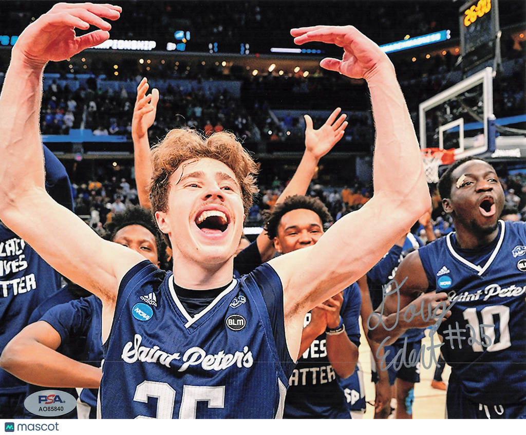 Doug Edert Saint Peter’s Peacocks Signed Basketball 8x10 Photo PSA