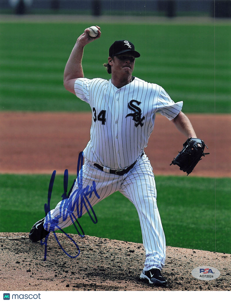 Up for sale is a 8x10 Photo hand signed by Gavin Floyd of the Chicago White Sox. This autographed photo is professionally authenticated by PSA, ensuring authenticity for collectors and fans alike. A great addition to any sports memorabilia collection. Listed With Mascot.
