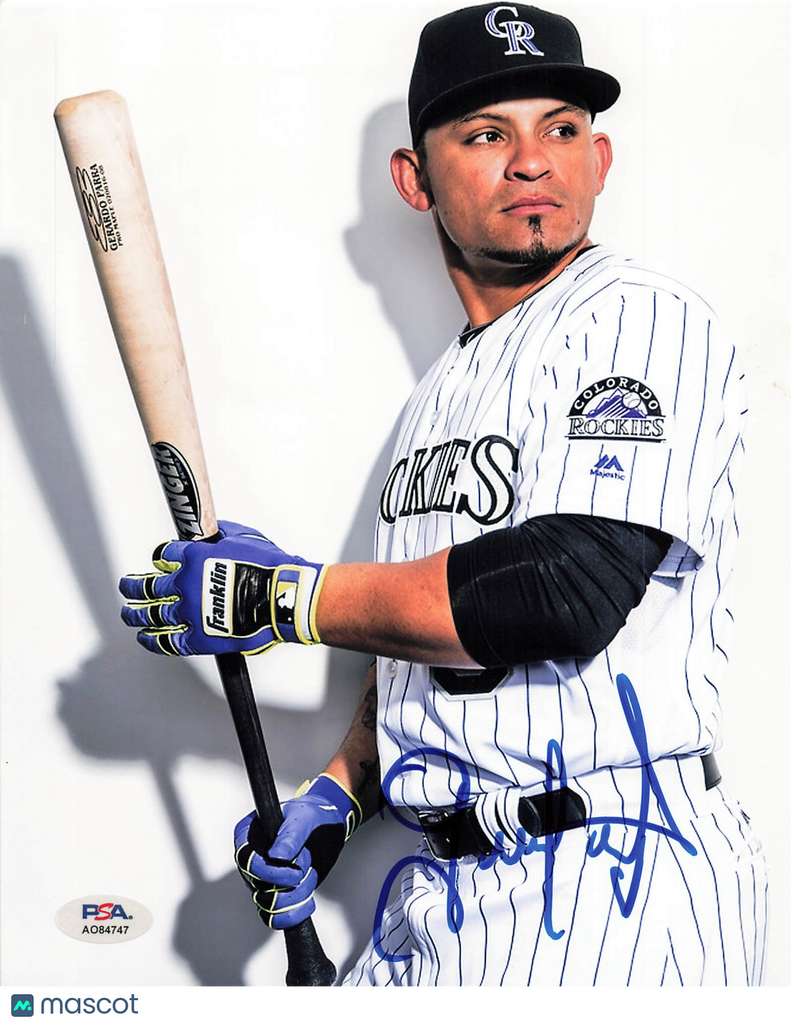 Up for sale is a 8x10 Photo hand signed by Gerardo Parra of the Colorado Rockies. This autographed photo is professionally authenticated by PSA, ensuring authenticity for collectors and fans alike. A great addition to any sports memorabilia collection. Listed With Mascot.