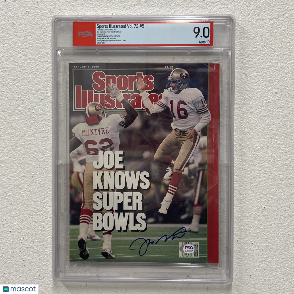 Thank you for visiting our store! We take pride in offering authentic, high-quality collectibles and want every customer to feel confident in their purchase. This listing features a Sports Illustrated Vol.72 #5 signed by Joe Montana, professionally authenticated and encapsulated by PSA. Each item is carefully inspected prior to shipment and securely packaged for safe delivery. If you have any questions before or after your purchase, please don’t hesitate to reach out. We are committed to providing fast, friendly customer service and are always happy to help. Listed With Mascot.