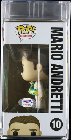 Up for sale is a Funko Pop signed by Mario Andretti who is one of only two drivers to have won races in Formula One, IndyCar, the World Sportscar Championship, and NASCAR. The autograph of Mario on this Funko was authenticated and encapsulated by a team of experts at PSA/DNA so you can rest assured you are purchasing the real deal.