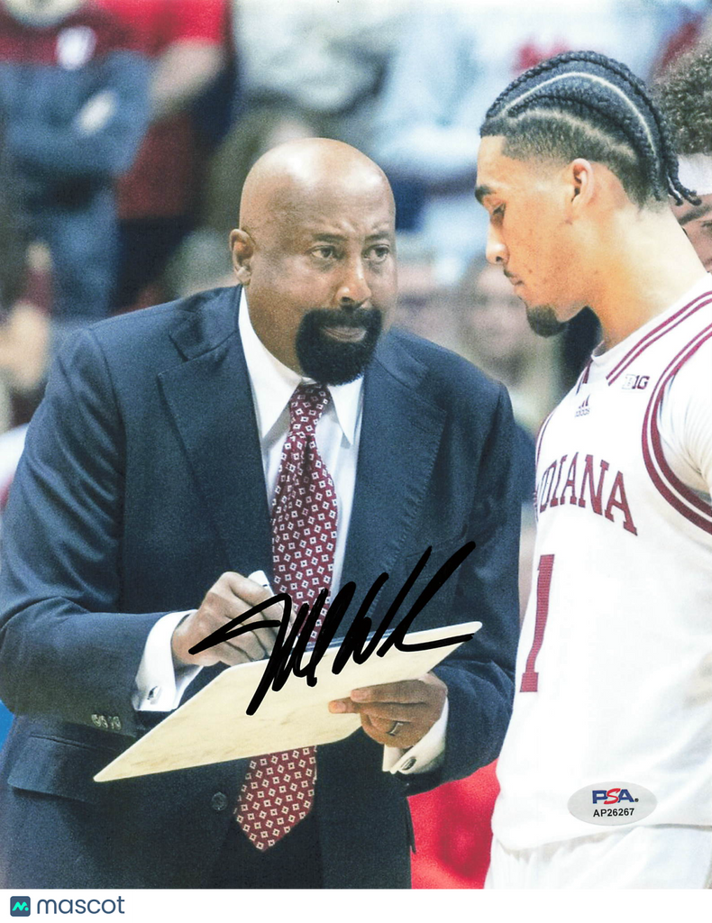 Up for sale is a signed basketball 8x10 Photo autographed by Mike Woodson of the Indiana Hoosiers. The autograph has been professionally authenticated by PSA, providing confidence in the authenticity of this basketball collectible. A great addition to any basketball or sports memorabilia collection. Listed With Mascot.