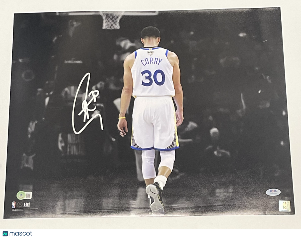 Thank you for checking out our store! We value each and every customer and want you to be happy with the purchase you are making. Up for sale is a 16x20 photo signed by Stephen Curry of the Golden State Warriors. The autograph of Stephen on this photo was authenticated by a team of experts at PSA/DNA and Beckett so you can rest assured you are purchasing the real deal. We’d like to encourage you, our customer, to reach out to us if you come across any questions. We always take the time to respond to a message from our customers and we’re happy to hear from you! Listed With Mascot.