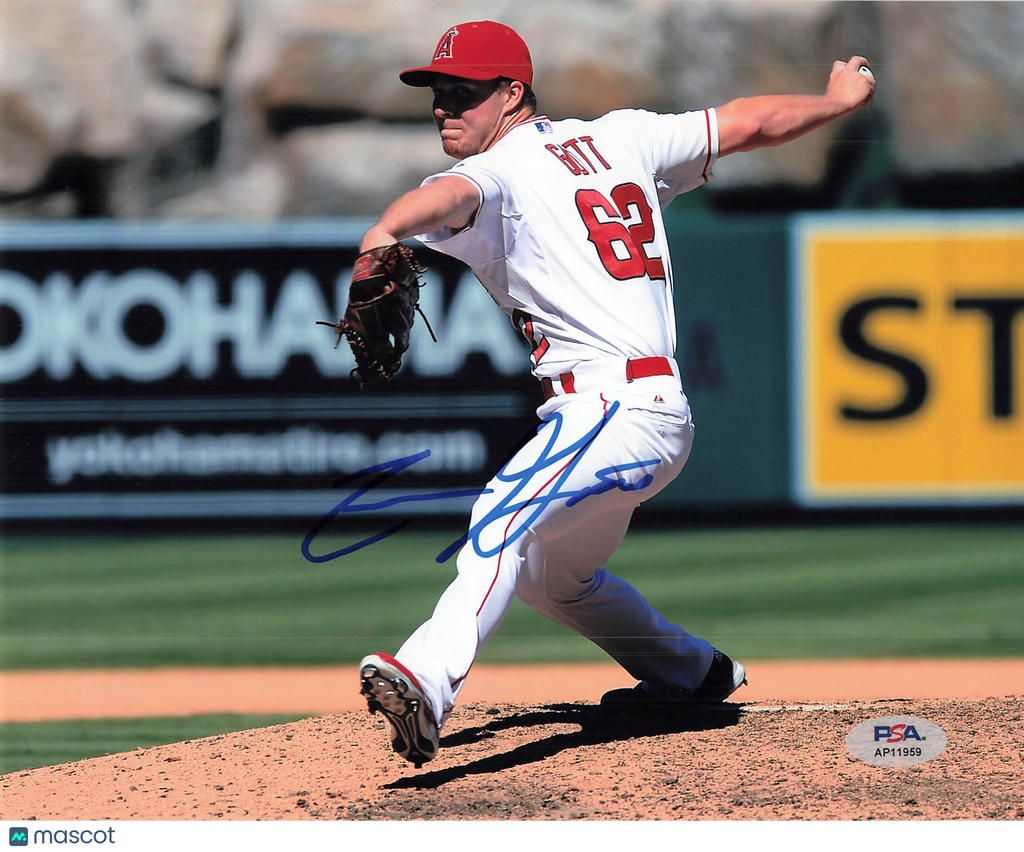 Up for sale is a 8x10 Photo hand signed by Trevor Gott of the Los Angeles Angels. This autographed photo is professionally authenticated by PSA, ensuring authenticity for collectors and fans alike. A great addition to any sports memorabilia collection. Listed With Mascot.