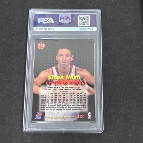 Thank you for visiting our store! We take pride in offering authentic, high-quality collectibles and want every customer to feel confident in their purchase. This listing features a Topps #R13 Steve Nash, professionally PSA authenticated. Each item is carefully inspected prior to shipment and securely packaged for safe delivery. If you have any questions before or after your purchase, please don’t hesitate to reach out. We are committed to providing fast, friendly customer service and are always happy to help. Listed With Mascot.