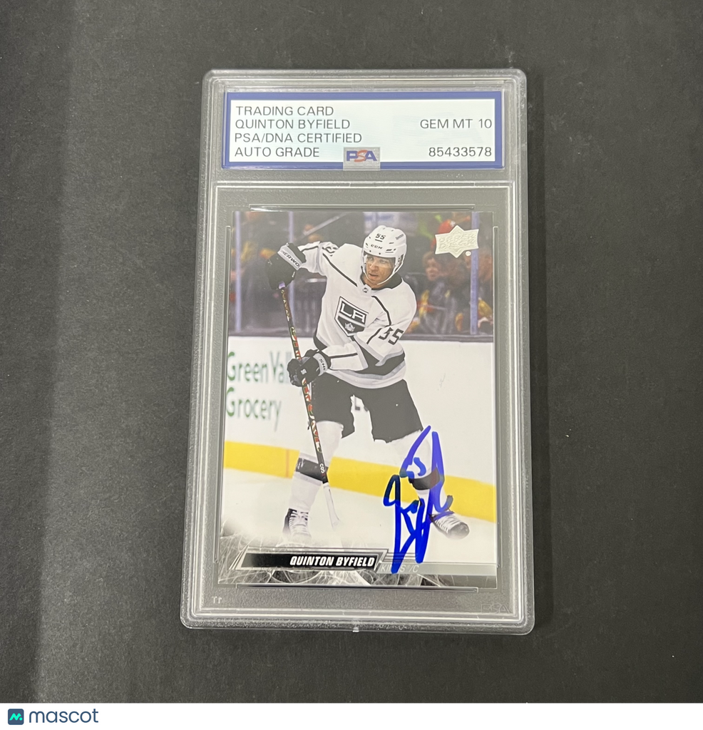 Thank you for checking out our store! We value each and every customer and want you to be happy with the purchase you are making. You are purchasing a 2022-2023 Upper Deck Series #337 Quinton Byfield PSA Auto 10 . We’d like to encourage you, our customer, to reach out to us if you come across any questions. We always take the time to respond to a message from our customers and we’re happy to hear from you! Listed With Mascot.