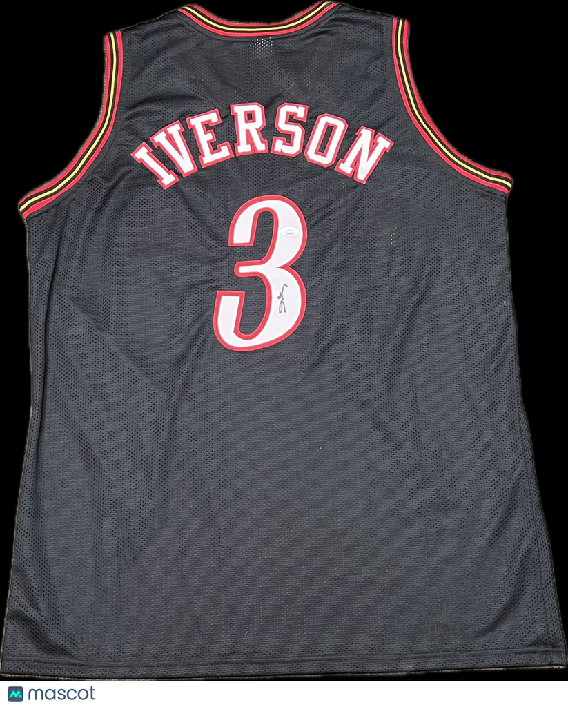 Up for sale is a signed Philadelphia 76ers jersey autographed by Allen Iverson. The autograph has been professionally authenticated by JSA, providing confidence in the authenticity of this basketball jersey. A great addition to any basketball or sports memorabilia collection. Listed With Mascot.