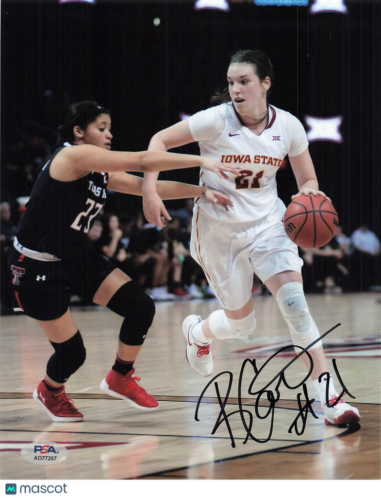 Up for sale is a signed basketball 8x10 Photo autographed by Bridget Carleton of the Iowa State Cyclones. The autograph has been professionally authenticated by PSA, providing confidence in the authenticity of this basketball collectible. A great addition to any basketball or sports memorabilia collection. Listed With Mascot.