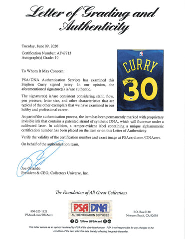 Thank you for checking out our store! We value each and every customer and want you to be happy with the purchase you are making. Up for sale is an autographed jersey by Stephen Curry of the Golden State Warriors. The autograph of Steph on this jersey was authenticated by a team of experts at PSA/DNA so you can rest assured you are purchasing the real deal. The signature was also graded and is a PSA 10 for the autograph, which makes this jersey very rare. It also has an upgraded letter of authenticity from PSA. We’d like to encourage you, our customer, to reach out to us if you come across any questions. We always take the time to respond to a message from our customers and we’re happy to hear from you! Listed With Mascot.