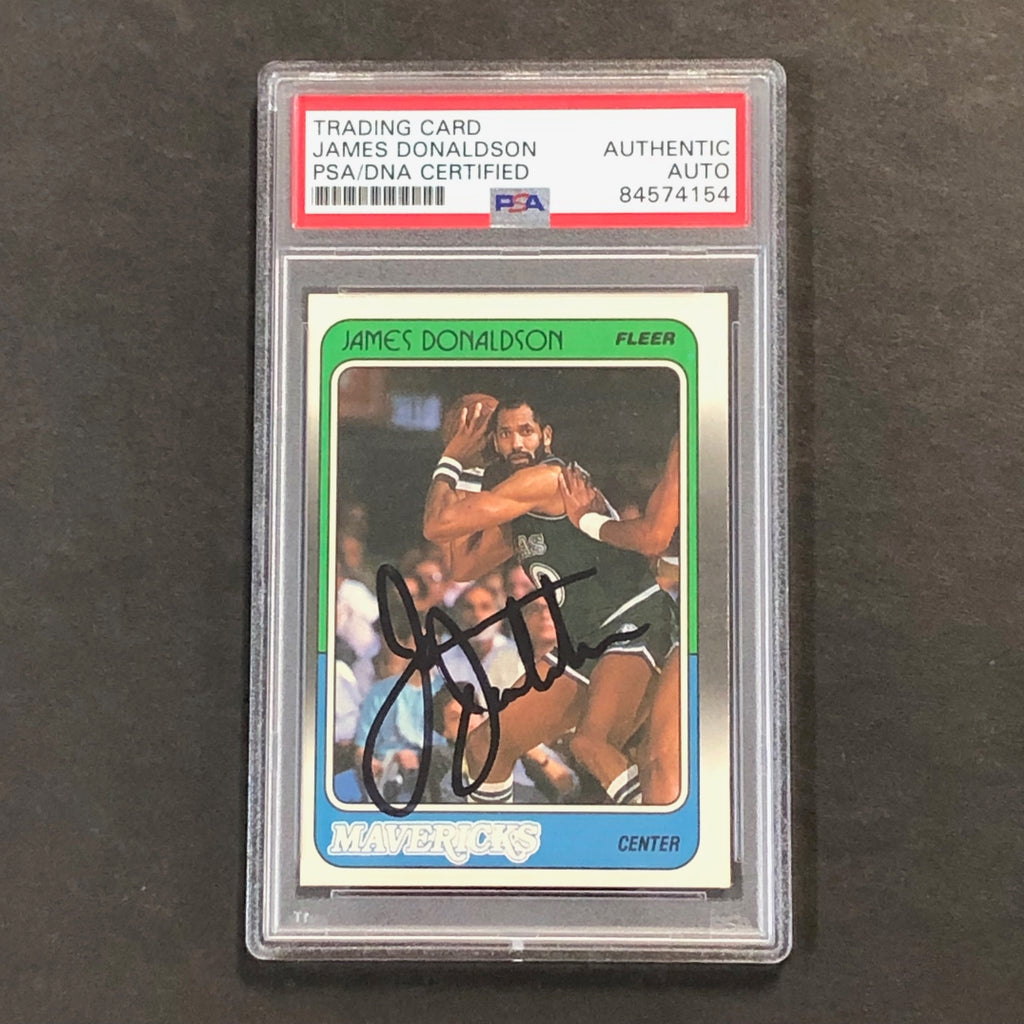 Up for sale is a 1988-89 Fleer #29 card signed by James Donaldson who notably played for the Dallas Mavericks. The autograph of James on this card was authenticated by a team of experts at PSA/DNA Authentication Services (PSA/DNA) and encapsulated so you can rest assured you are purchasing the real deal.