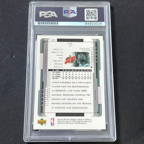 Up for sale is a 2001 Upper Deck #157 card signed by Rashard Lewis, who notably played for the Seattle SuperSonics. The autograph of Rashard on this card was authenticated by a team of experts at PSA/DNA Authentication Services (PSA/DNA) and encapsulated so you can rest assured you are purchasing the real deal.