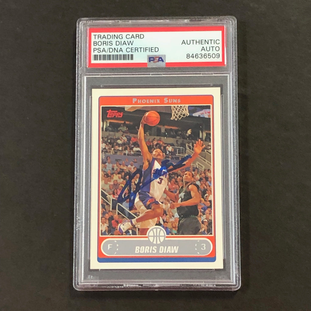 Up for sale is a 2006-07 Topps #159 card signed by Boris Diaw who notably played for the Phoenix Suns. The autograph of Boris on this card was authenticated by a team of experts at PSA/DNA Authentication Services (PSA/DNA) and encapsulated so you can rest assured you are purchasing the real deal.