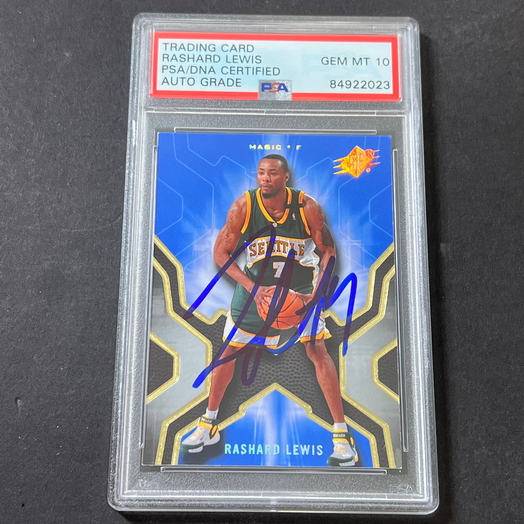 Up for sale is a 2007-08 Upper Deck SP #88 card signed by Rashard Lewis, who notably played for the Orlando Magic. The autograph of Rashard on this card was authenticated by a team of experts at PSA/DNA Authentication Services (PSA/DNA) and encapsulated so you can rest assured you are purchasing the real deal.
