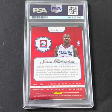 Up for sale is a 2012-13 Panini Elite #44 card signed by Jason Richardson. The autograph of Jason on this card was authenticated by a team of experts at PSA/DNA Authentication Services (PSA/DNA) and encapsulated so you can rest assured you are purchasing the real deal.