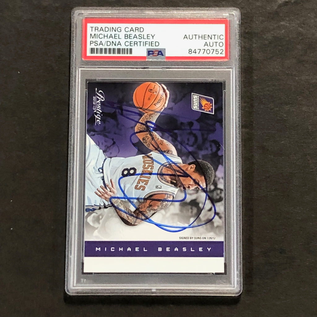 Up for sale is a 2012-13 Panini Prestige #12 card signed by Michael Beasley. The autograph of Michael on this card was authenticated by a team of experts at PSA/DNA Authentication Services (PSA/DNA) and encapsulated so you can rest assured you are purchasing the real deal.