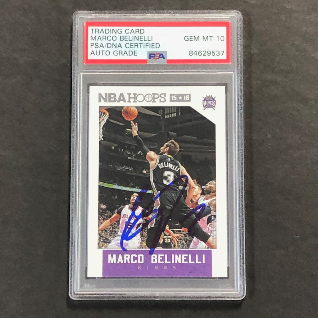 2015-16 NBA Hoops #94 Marco Belinelli Signed Card AUTO 10 PSA Slabbed Kings