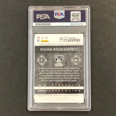 Up for sale is a 2015-16 Panini Excalibur #20 card signed by Bojan Bogdanovic who notably played for the Brooklyn Nets. The autograph of Bojan on this card was authenticated by a team of experts at PSA/DNA Authentication Services (PSA/DNA) and encapsulated so you can rest assured you are purchasing the real deal.