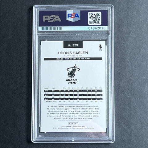 Up for sale is a 2016-17 NBA Hoops #259 signed by Udonis Haslem. The autograph of Udonis on this card was authenticated by a team of experts at PSA/DNA Authentication Services (PSA/DNA) and encapsulated so you can rest assured you are purchasing the real deal.