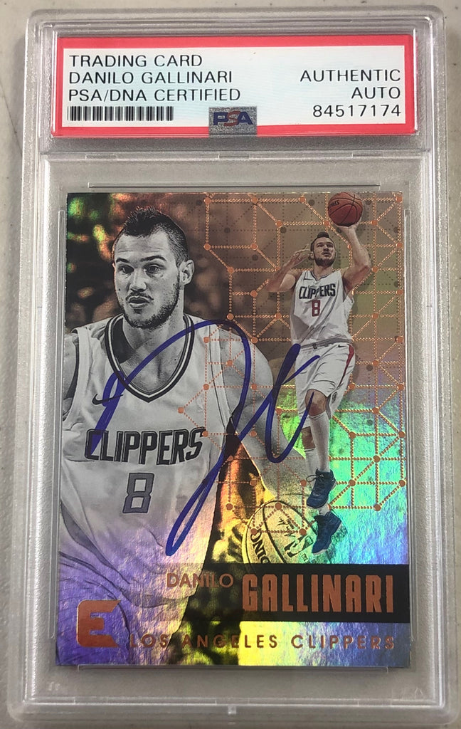 Up for sale is a 2017-18 Panini Essentials #42 card signed by Danilo Gallinari who notably played for the Los Angeles Clippers. The autograph of Danilo on this card was authenticated by a team of experts at PSA/DNA Authentication Services (PSA/DNA) and encapsulated so you can rest assured you are purchasing the real deal.