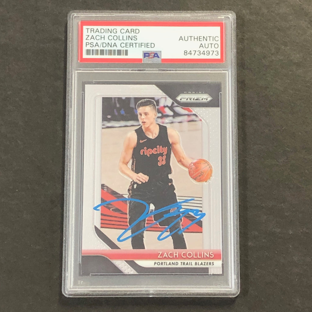 Up for sale is a 2018-19 Panini Prizm #141 card signed by ZACH COLLINS. The autograph of Zach on this card was authenticated by a team of experts at PSA/DNA Authentication Services (PSA/DNA) and encapsulated so you can rest assured you are purchasing the real deal.