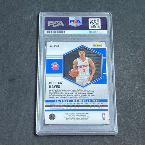 Up for sale is a 2020-21 Panini Mosaic #270 card signed by Killian Hayes of the Detroit Pistons. The autograph of Killian on this card was authenticated by a team of experts at PSA/DNA Authentication Services (PSA/DNA) and encapsulated so you can rest assured you are purchasing the real deal.