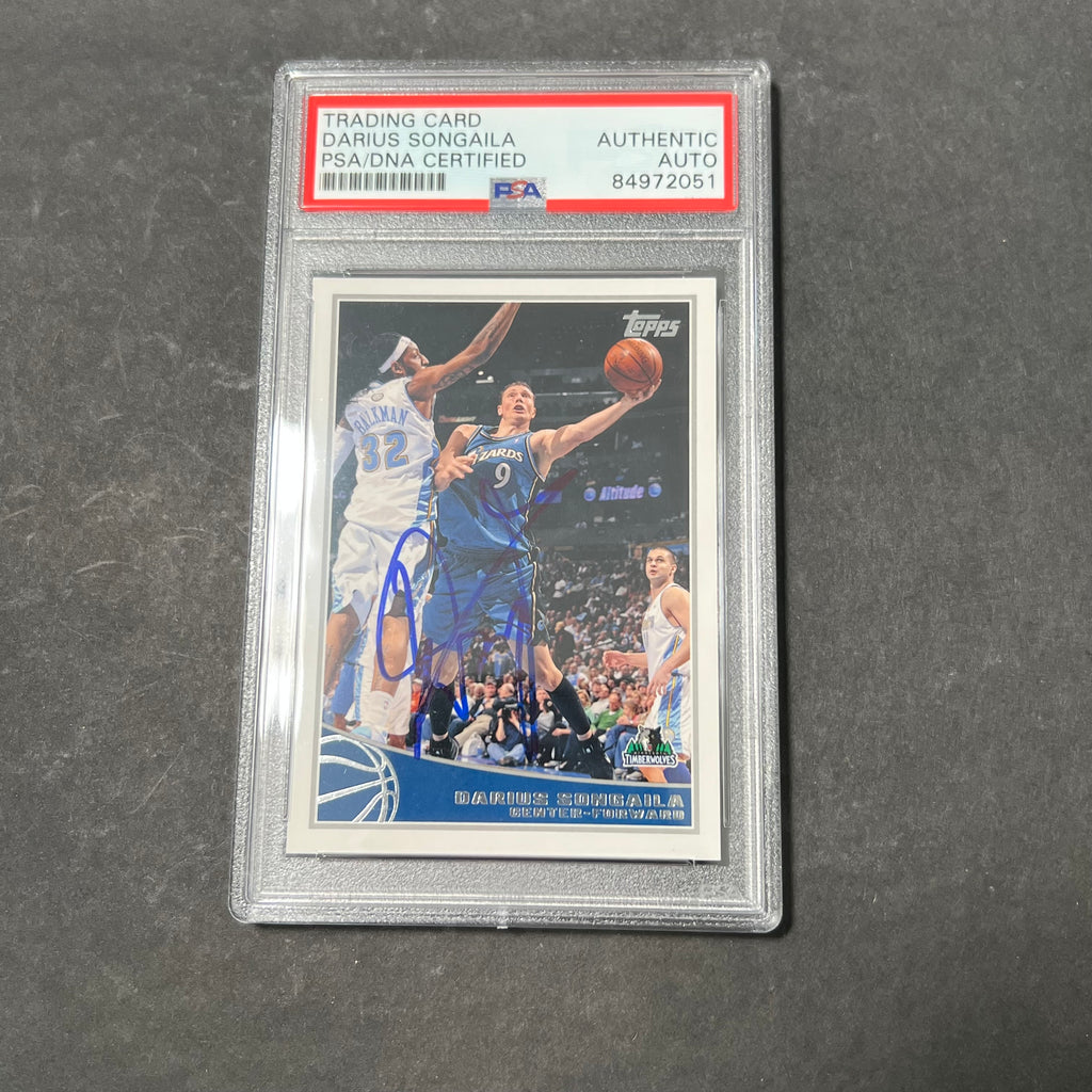 Up for sale is a 2009 Topps #315 card signed by Darius Songaila. The autograph of Darious on this card was authenticated by a team of experts at PSA/DNA Authentication Services (PSA/DNA) and encapsulated so you can rest assured you are purchasing the real deal.