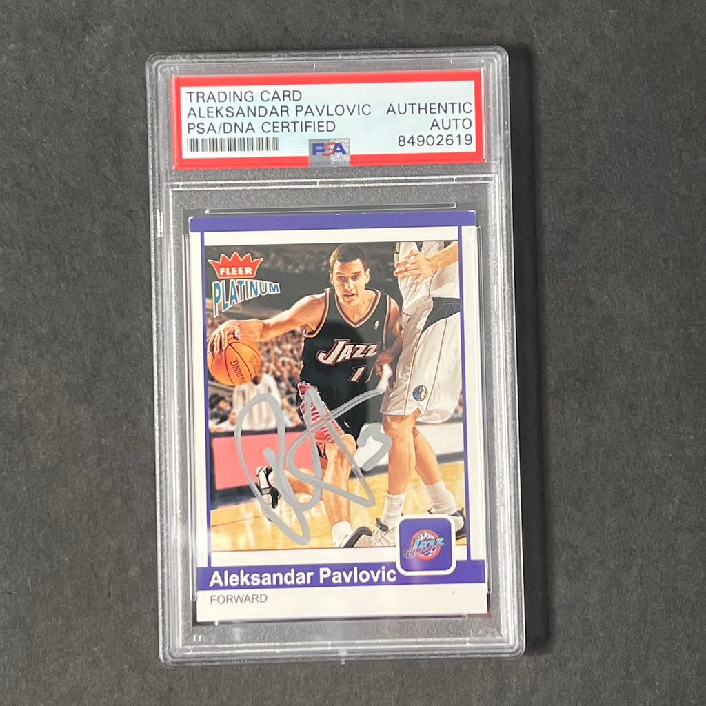 Up for sale is a 2004 Fleer Platinum #175 card signed by Aleksandar Pavlovic who notably played for the Utah Jazz. The autograph of Aleksandar on this card was authenticated by a team of experts at PSA/DNA Authentication Services (PSA/DNA) and encapsulated so you can rest assured you are purchasing the real deal.