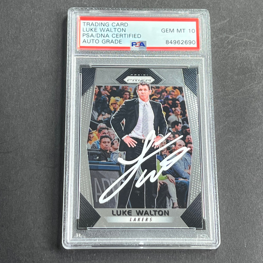 Up for sale is a 2017-18 Panini Prizim #290 card signed by Luke Walton who notably played for the Los Angeles Lakers. The autograph of Luke on this card was authenticated by a team of experts at PSA/DNA Authentication Services (PSA/DNA) and encapsulated so you can rest assured you are purchasing the real deal.