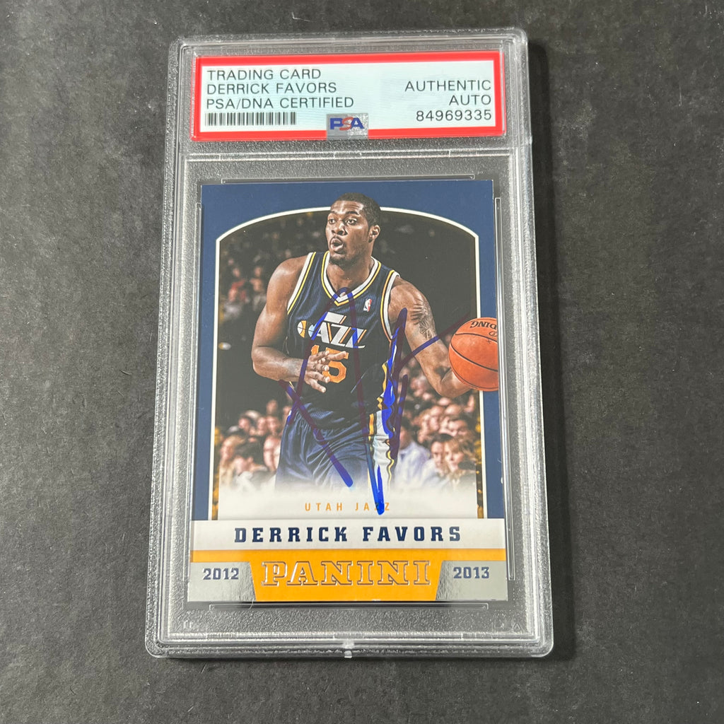 Up for sale is a 2012-13 Panini #48 card signed by Derrick Favors of the Utah Jazz. The autograph of Derrick on this card was authenticated by a team of experts at PSA/DNA Authentication Services (PSA/DNA) and encapsulated so you can rest assured you are purchasing the real deal.