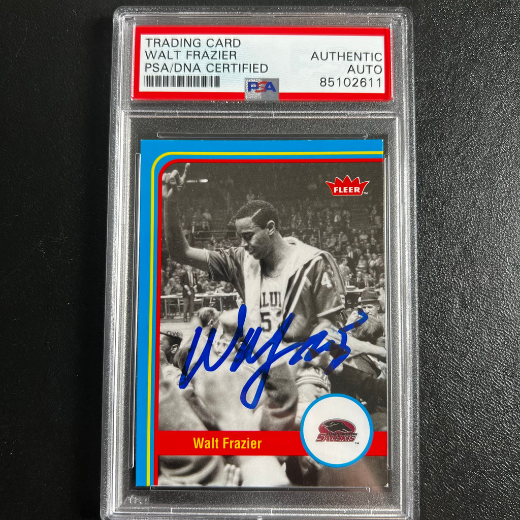 Up for sale is a 2012-13 Fleer Retro Basketball #25 card signed by Walt Frazier. The autograph of Walt on this card was authenticated by a team of experts at PSA/DNA Authentication Services (PSA/DNA) and encapsulated so you can rest assured you are purchasing the real deal.