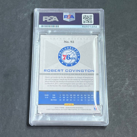Up for sale is a 2016-17 Panini Grand Reserves #92 card signed by Robert Covington who notably played for the Philadelphia 76ers. The autograph of Robert on this card was authenticated by a team of experts at PSA/DNA Authentication Services (PSA/DNA) and encapsulated so you can rest assured you are purchasing the real deal.