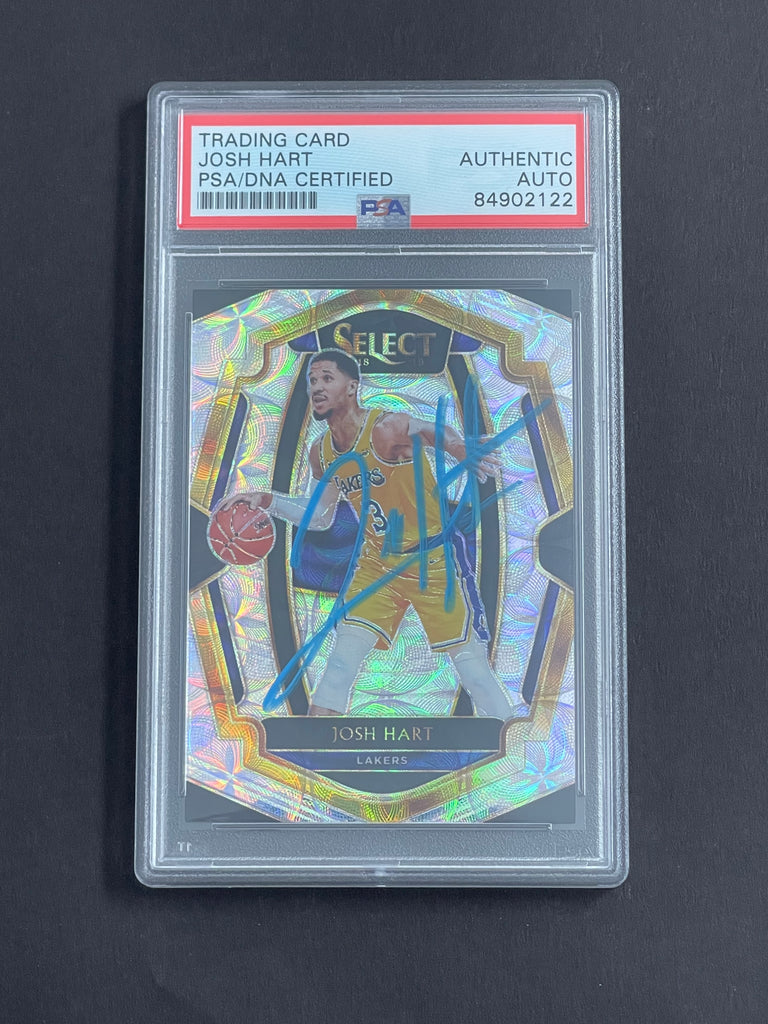 Up for sale is a 2018-19 Panini Select #155 card signed by JOSH HART who notably played for the Los Angeles Lakers. The autograph of Josh on this card was authenticated by a team of experts at PSA/DNA Authentication Services (PSA/DNA) and encapsulated so you can rest assured you are purchasing the real deal.
