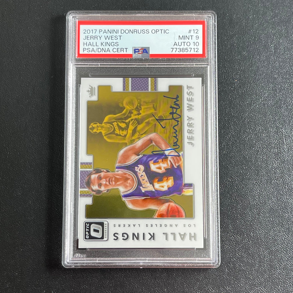 Up for sale is a 2017 Panini Donruss Optic Hall Kings #12 signed by JERRY WEST. The autograph of Jerry on this card was authenticated and graded a MINT 9 and AUTO 10 by a team of experts at PSA/DNA and encapsulated so you can rest assured you are purchasing the real deal.
