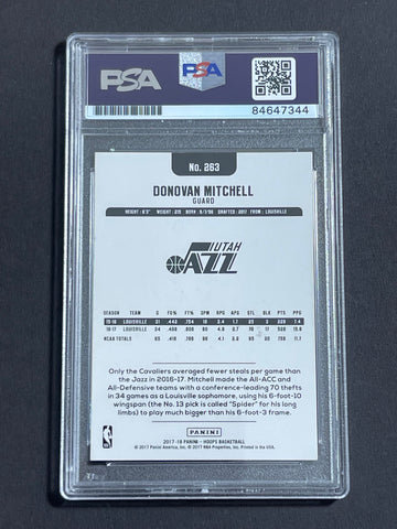 Up for sale is a 2017-18 NBA Hoops #263 card signed by Donovan Mitchell of the Utah Jazz. The autograph of Donovan on this card was authenticated by a team of experts at PSA/DNA Authentication Services (PSA/DNA) and encapsulated so you can rest assured you are purchasing the real deal.