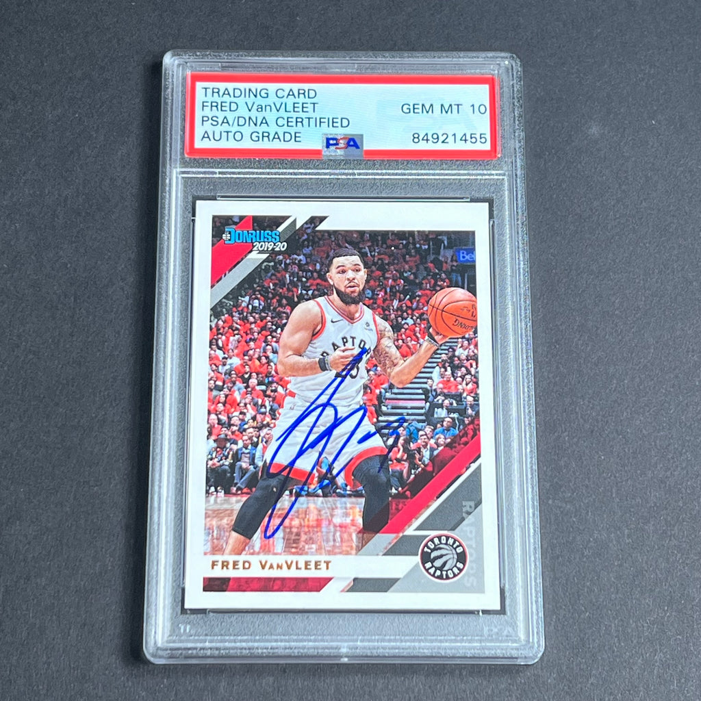 Up for sale is a 2019-20 Panini Donruss #190 card signed by Fred VanVleet who notably played for the Toronto Raptors. The autograph of Fred on this card was authenticated by a team of experts at PSA/DNA Authentication Services (PSA/DNA) and encapsulated so you can rest assured you are purchasing the real deal.