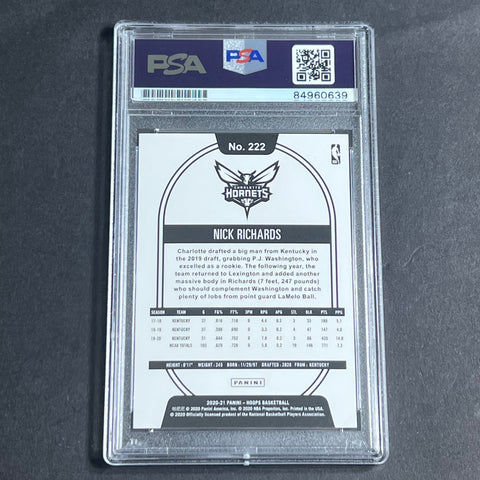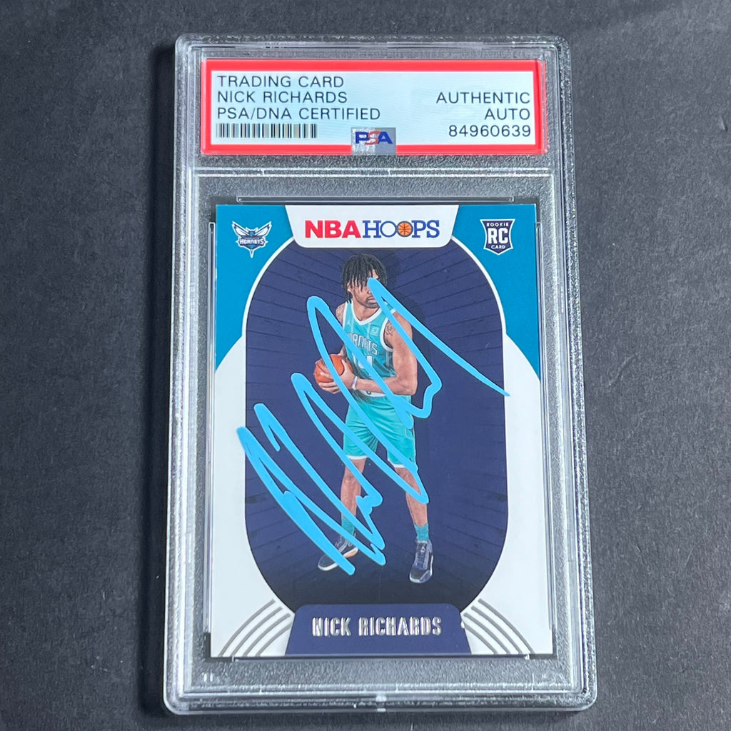 Up for sale is a 2020-21 NBA Hoops #222 card signed by Nick Richards. The autograph of Nick on this card was authenticated by a team of experts at PSA/DNA Authentication Services (PSA/DNA) and encapsulated so you can rest assured you are purchasing the real deal.