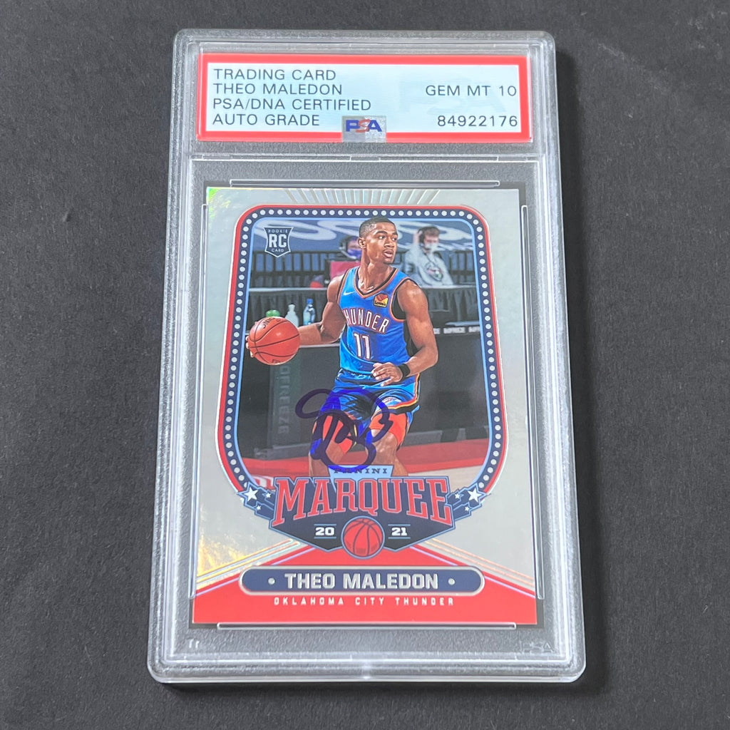 Up for sale is a 2020-21 Panini Marquee #270 card signed by Theo Maledon. The autograph of Theo on this card was authenticated by a team of experts at PSA/DNA Authentication Services (PSA/DNA) and encapsulated so you can rest assured you are purchasing the real deal.