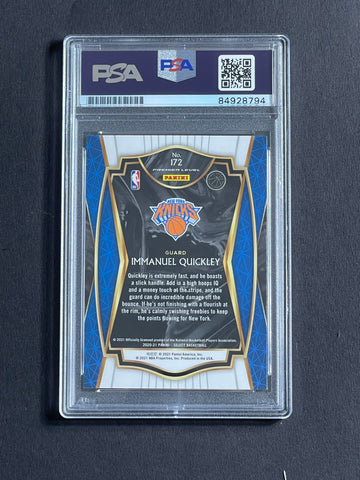 Up for sale is a 2021 Panini Select #172 card signed by IMMANUEL QUICKLEY of the New York Knicks. The autograph of IMMANUEL on this card was authenticated by a team of experts at PSA/DNA Authentication Services (PSA/DNA) and encapsulated so you can rest assured you are purchasing the real deal.