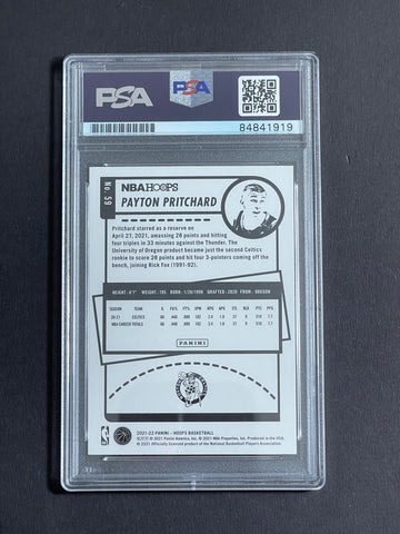 Up for sale is a 2021-22 NBA Hoops Teel Explosion #59 card signed by Payton Pritchard of the Boston Celtics. The autograph of Payton on this card was authenticated by a team of experts at PSA/DNA Authentication Services (PSA/DNA) and encapsulated so you can rest assured you are purchasing the real deal.