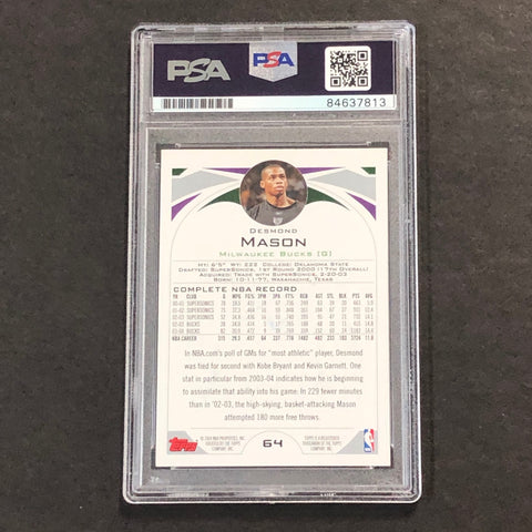 Up for sale is a 2004-05 Topps Basketball #64 card signed by Desmond Mason. The autograph of Desmond on this card was authenticated by a team of experts at PSA/DNA Authentication Services (PSA/DNA) and encapsulated so you can rest assured you are purchasing the real deal.