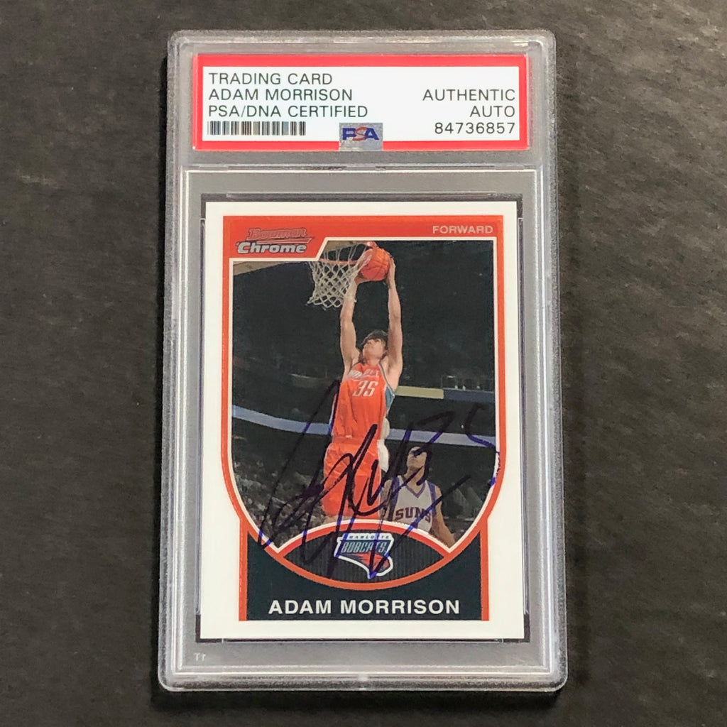 Up for sale is a 2007-08 Bowman Chrome #35 card signed by Adam Morrison. The autograph of Adam on this card was authenticated by a team of experts at PSA/DNA Authentication Services (PSA/DNA) and encapsulated so you can rest assured you are purchasing the real deal.