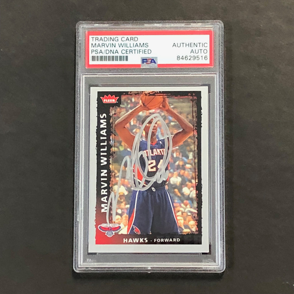 Up for sale is a 2008-09 Fleer Basketball #54 card signed by Marvin Williams. The autograph of Marvin on this card was authenticated by a team of experts at PSA/DNA Authentication Services (PSA/DNA) and encapsulated so you can rest assured you are purchasing the real deal.