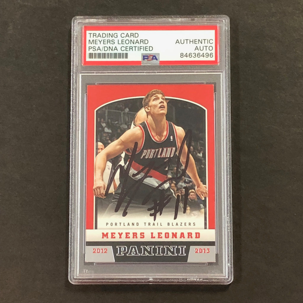 Up for sale is a 2012-13 Panini #208 card signed by Meyers Leonard who notably played for the Portland Trail Blazers. The autograph of Meyers on this card was authenticated by a team of experts at PSA/DNA Authentication Services (PSA/DNA) and encapsulated so you can rest assured you are purchasing the real deal.
