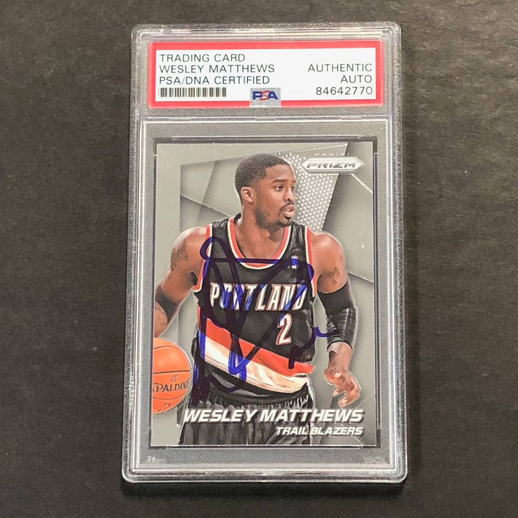 2014-15 Panini Prizm #144 Wesley Matthews Signed Card AUTO PSA Slabbed Trail Blazers